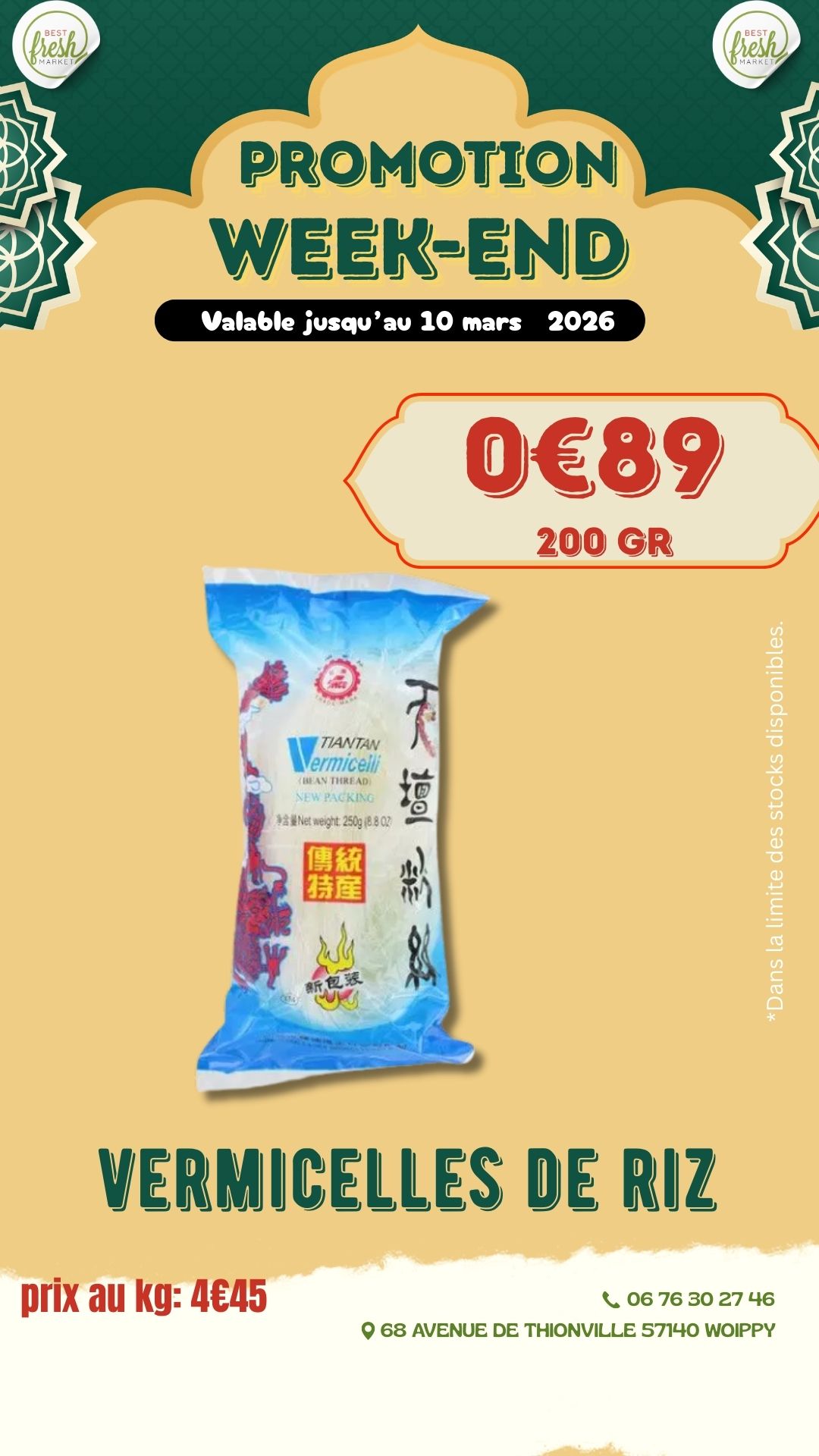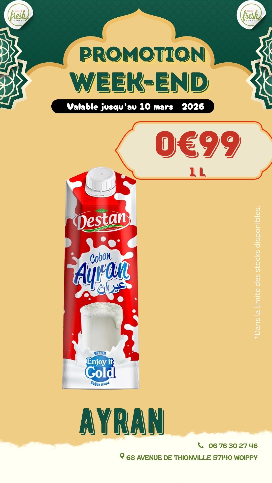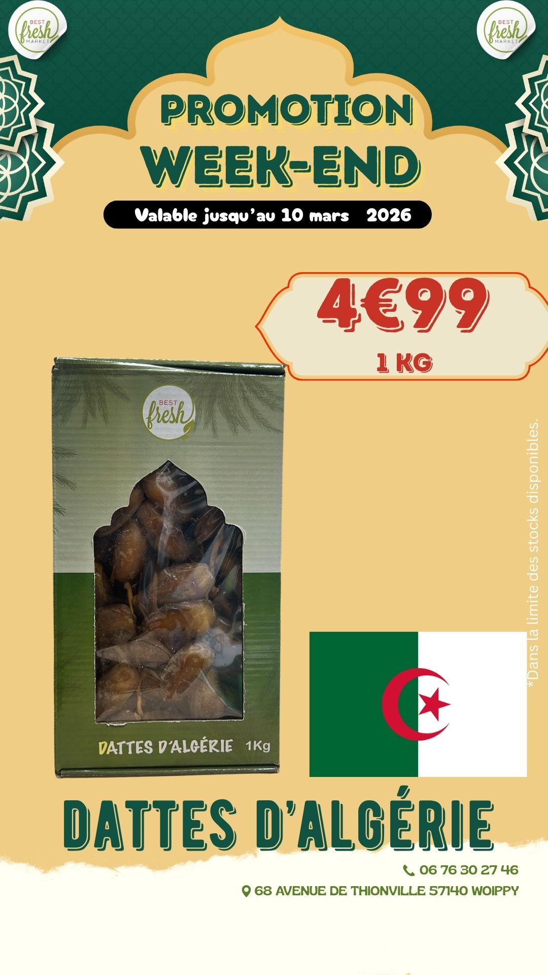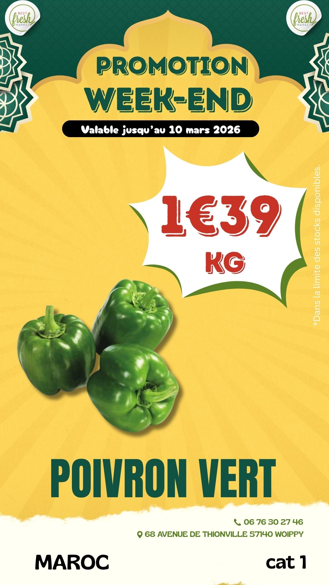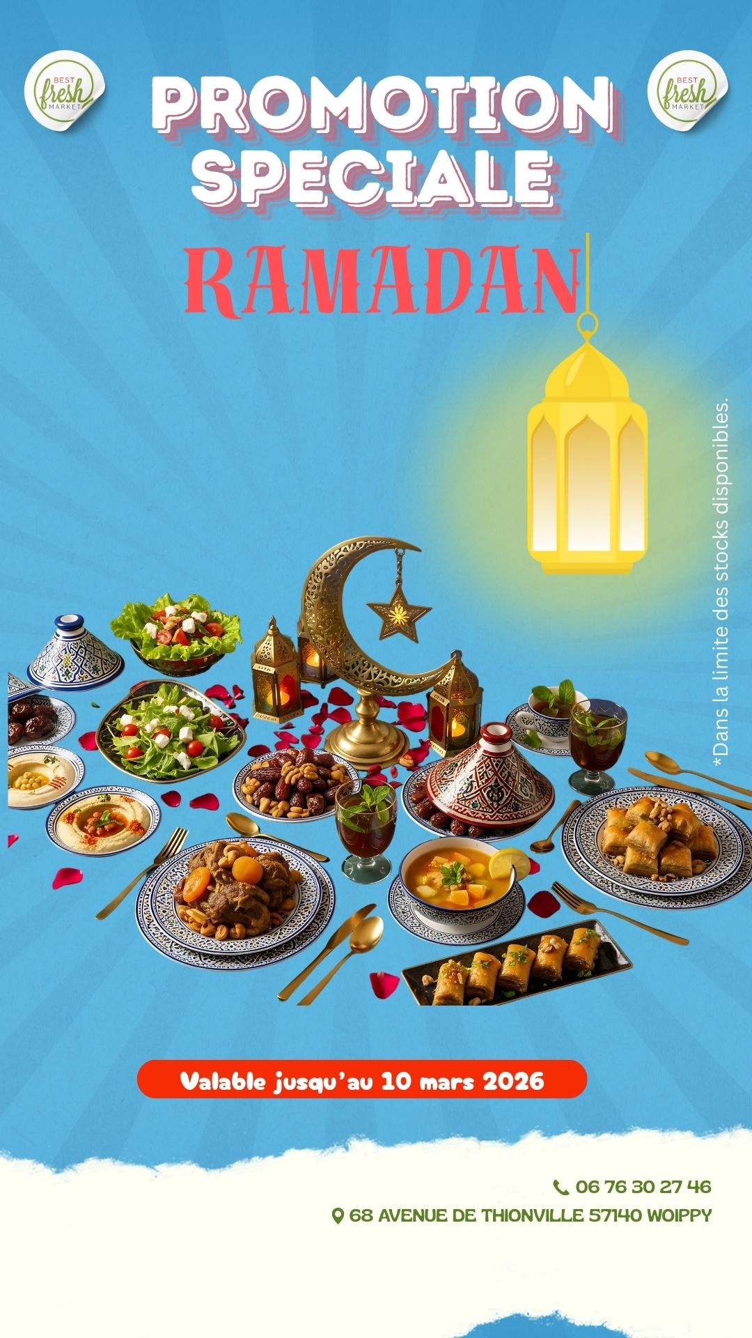 Bienvenue chez BEST FRESH MARKET, votre supermarché ethnique de confiance pour des produits frais et authentiques. Nous proposons une large gamme de produits, allant des fruits et légumes locaux à la viande fraîche halal, en passant par des charcuteries fines, des produits laitiers, et une épicerie riche en spécialités ethniques et épices rares. Notre engagement envers la fraîcheur et la qualité est au cœur de tout ce que nous faisons.