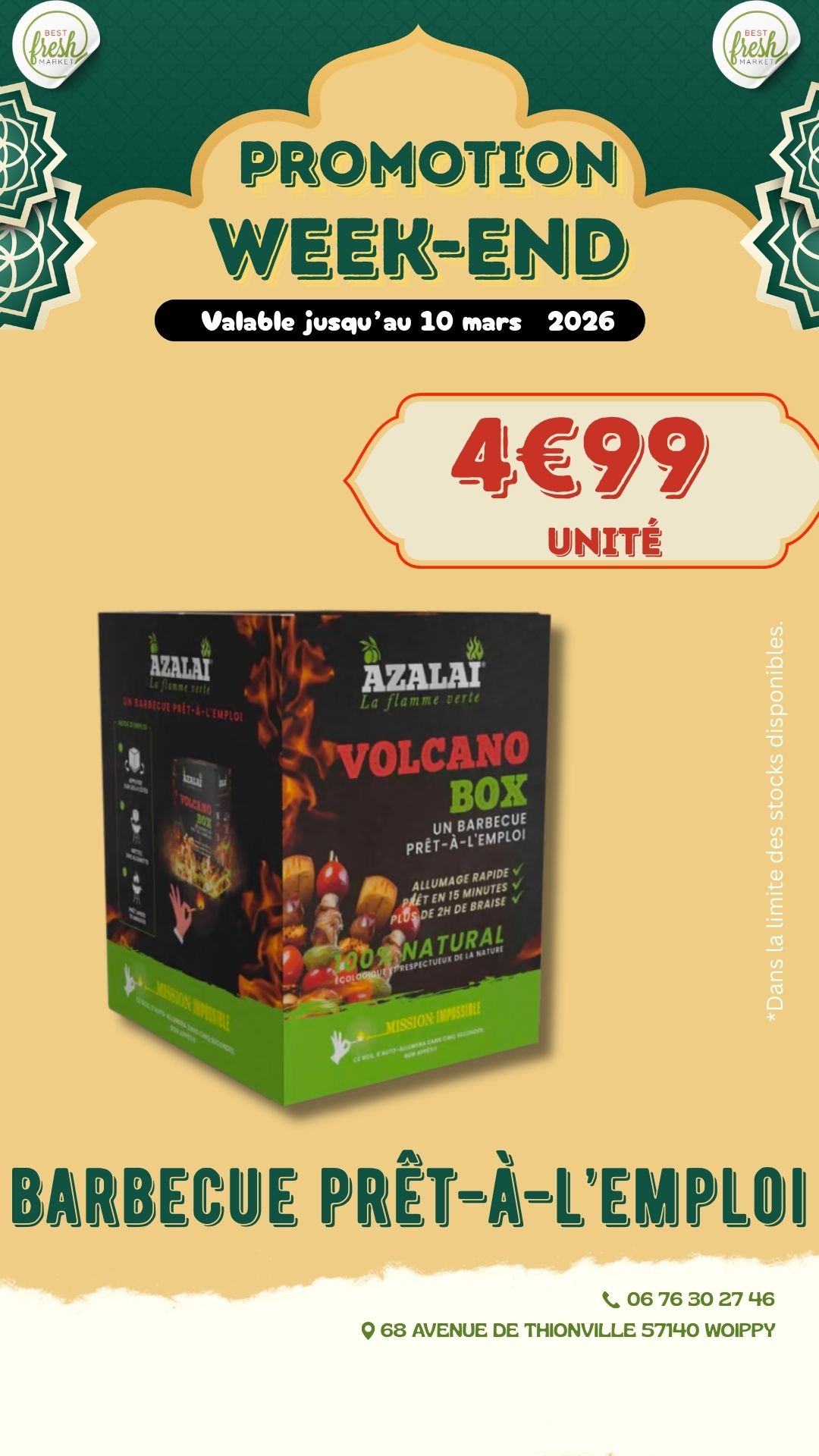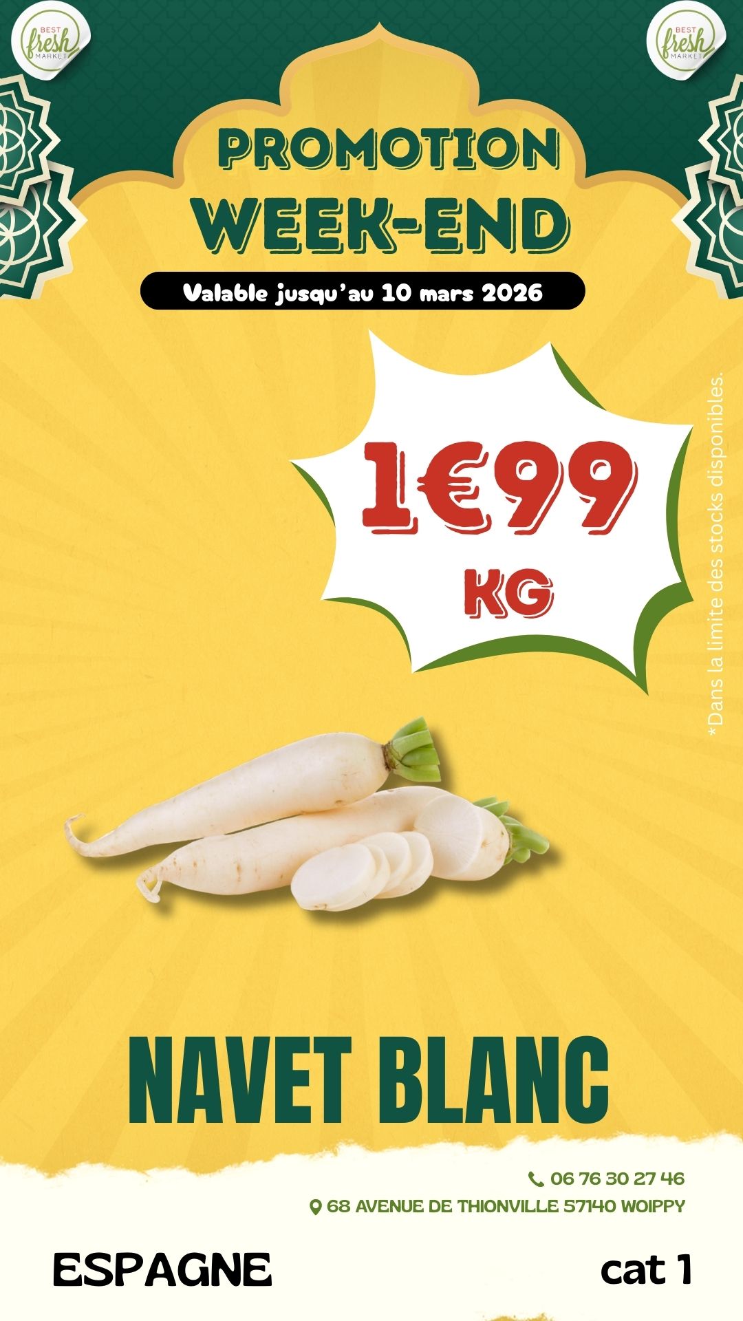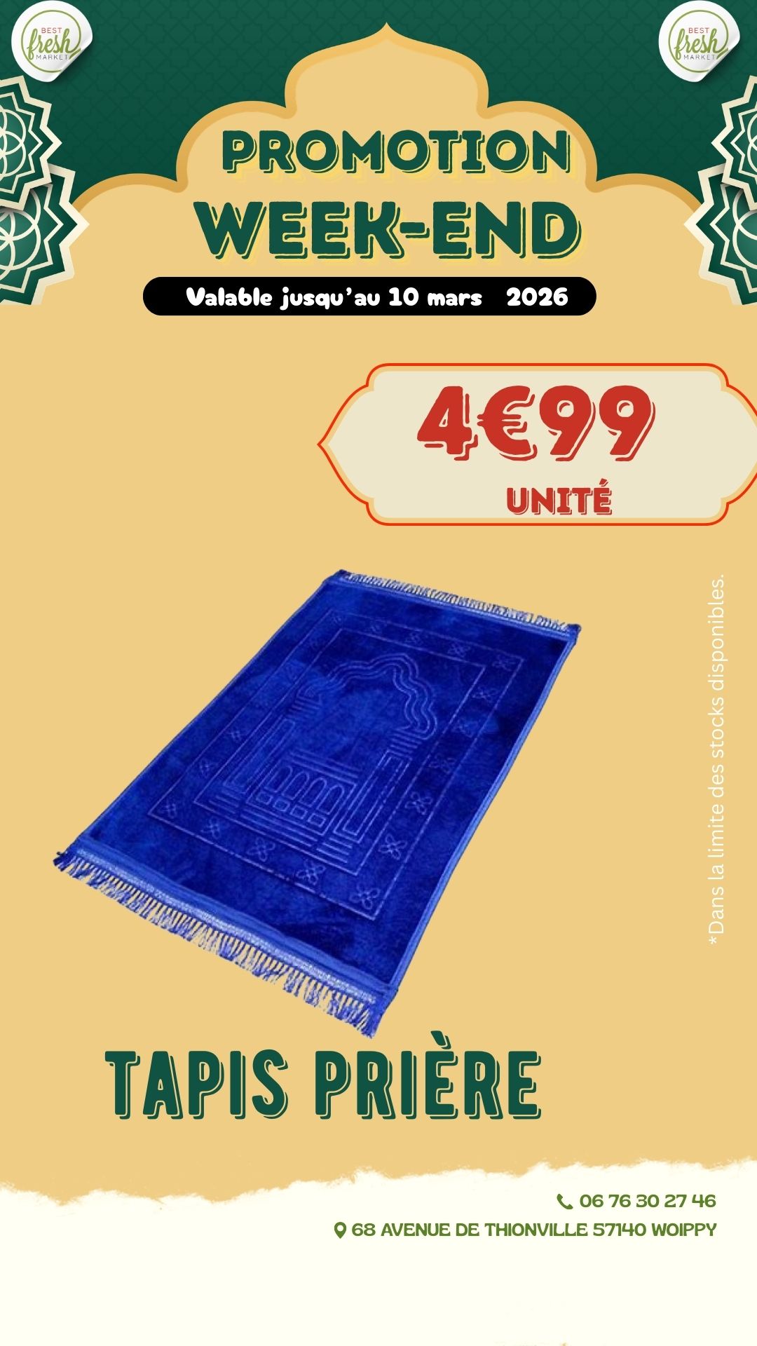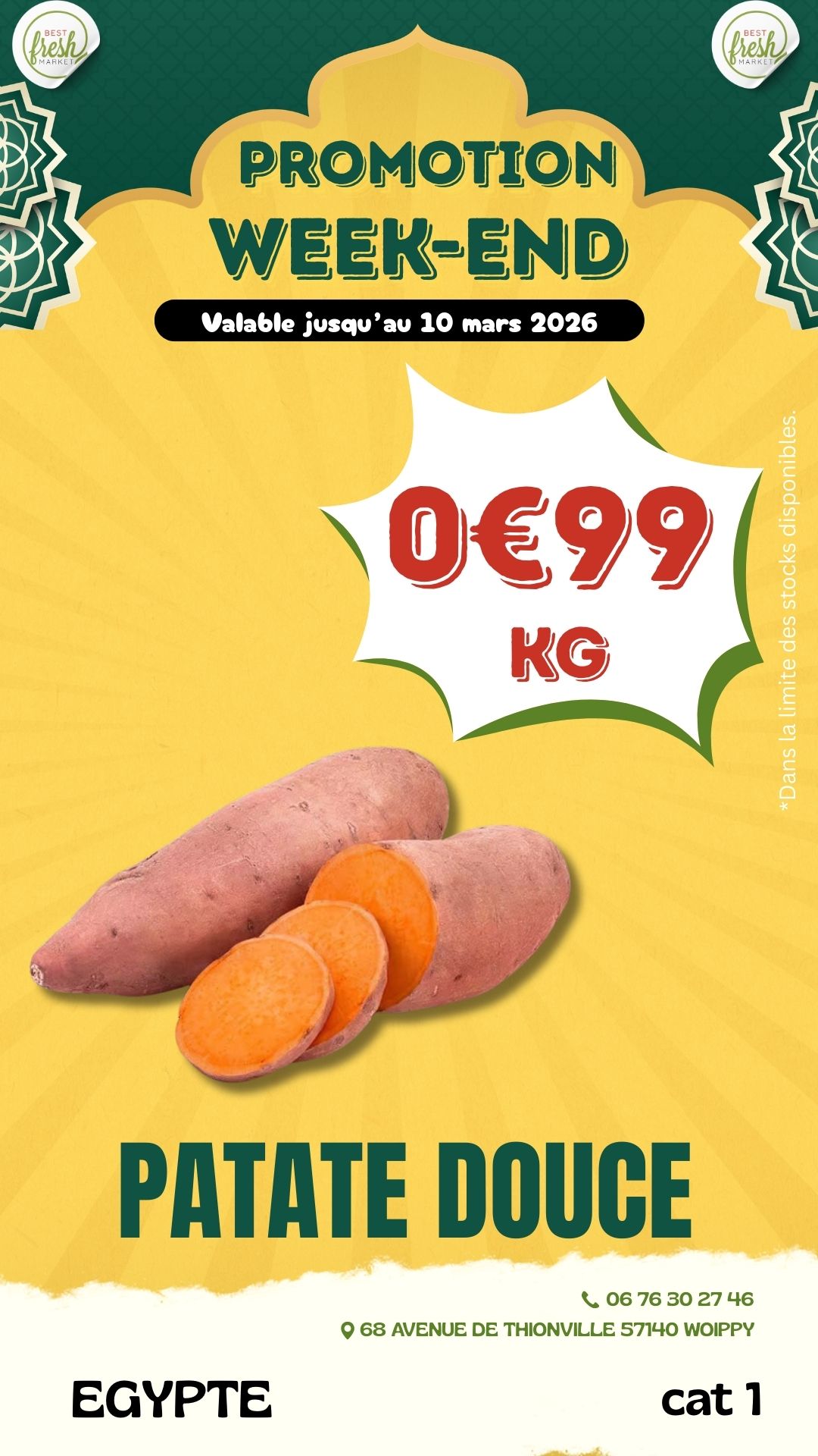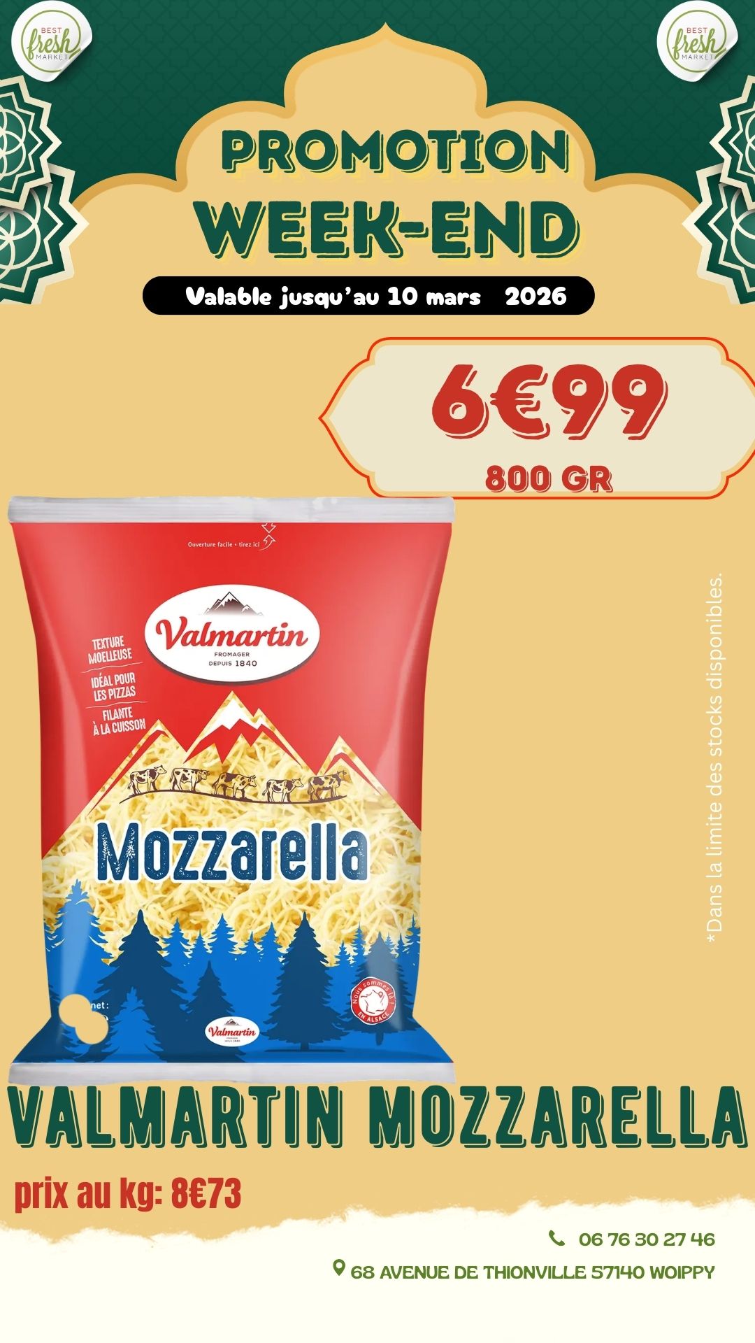 Bienvenue chez BEST FRESH MARKET, votre supermarché ethnique de confiance pour des produits frais et authentiques. Nous proposons une large gamme de produits, allant des fruits et légumes locaux à la viande fraîche halal, en passant par des charcuteries fines, des produits laitiers, et une épicerie riche en spécialités ethniques et épices rares. Notre engagement envers la fraîcheur et la qualité est au cœur de tout ce que nous faisons.